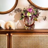 کنسول تمام چوب و لوکس مدل ویچنزا با در حصیری، یکی از چوبینه های ساخته شده در بخش طراحی و تولیدی مبلمان مجموعهی خانه طرح وردین است. ویژگی چشمگیر کنسول و سایدبورد ویچنزا استفاده از حصیر دست بافت بامبو در صفحهی جلویی درها است. طراحی مینیمال، ساده و بدون زواید و تعلقات اضافه، اتصالاتی زیبا و تناسبی چشم نواز، از مشخصههای بارز مجموعه دست ساخته های خانه طرح وردین است. دستگیرهی ساده این چوبینه، از فلز زیبای مس ساخته و با دست تراشیده و پرداخت شده است که همچون امضایی بر روی تمامی کنسولهای مجموعه خانه طرح وردین وجود دارد. این ساید بورد تماما از چوب مرغوب و طبیعی راش اتریش ساخته شده و بسیار محکم و مقاوم است. صفحهها با اتصالات زیبا، محکم و دقیق شانهای در هم تنیده شدهاند. کشوها دارای ریل مخفی و آرامبند هستند و لولای درها از نوع خرچنگی است که 180 درجه باز میشوند. این کنسول با رنگ گیاهی و روغنی مونوکوت رنگ شده است که هم لایهای محافظ برای چوب ایجاد میکند و هم طرح و نقش زیبای چوب طبیعی را به نمایش میگذارد. در صورت بروز آسیبهای سطحی ترمیم رنگ آن به آسانی میسر خواهد بود. از این کنسول میتوان هم در ورودی منزل استفاده کرد و هم در سالن پذیرایی برای قرار دادن ظروف. انواع سایزهای آینههای گرد پیرو مدل راندو را میتوان با این ساید بورد ترکیب کرد و چیدمانی کاربردی و زیبا آفرید. این ساید بورد در سایز بزرگتر هم موجود است که برای سالنهای پذیرایی بزرگ مناسب میباشد. عکسهایی که از این محصول در آلبوم تصاویر وجود دارد همگی تصاویری اصلی هستند که در استودیوی عکاسی خانه طرح از محصول نهایی گرفته شدهاند و محصول تحویل شده کاملا با تصاویر مطابقت دارد.