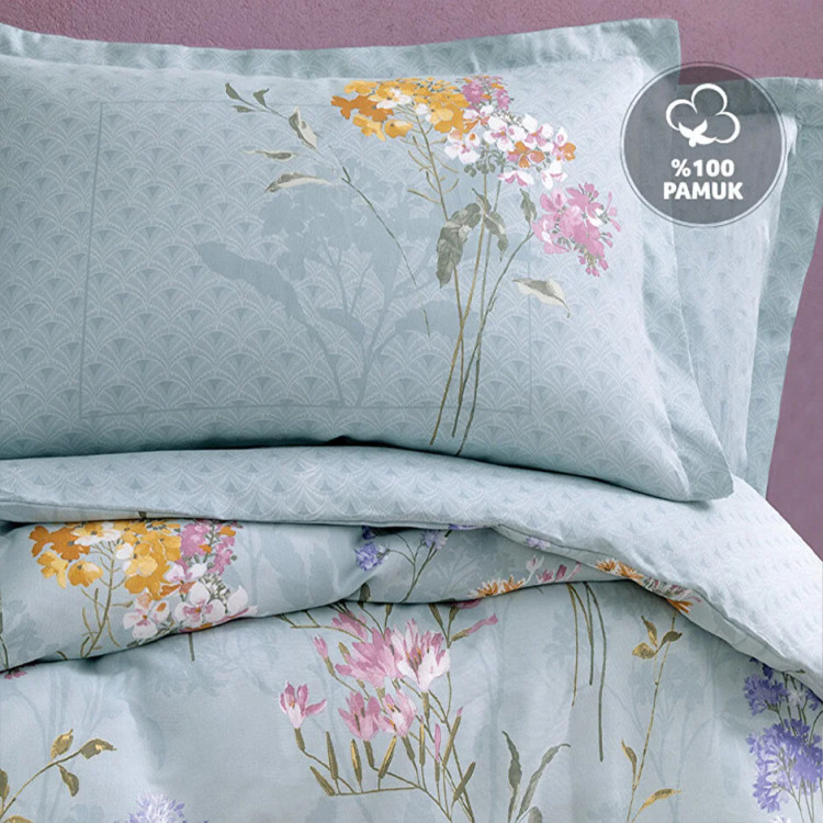 طراحی گلدار ملایم با رنگبندی آرامشبخش (مانند سبز نعنایی) باعث شده سرویس روتختی یاتاش آلیسا بهراحتی با انواع دکوراسیون اتاق خواب هماهنگ شود: