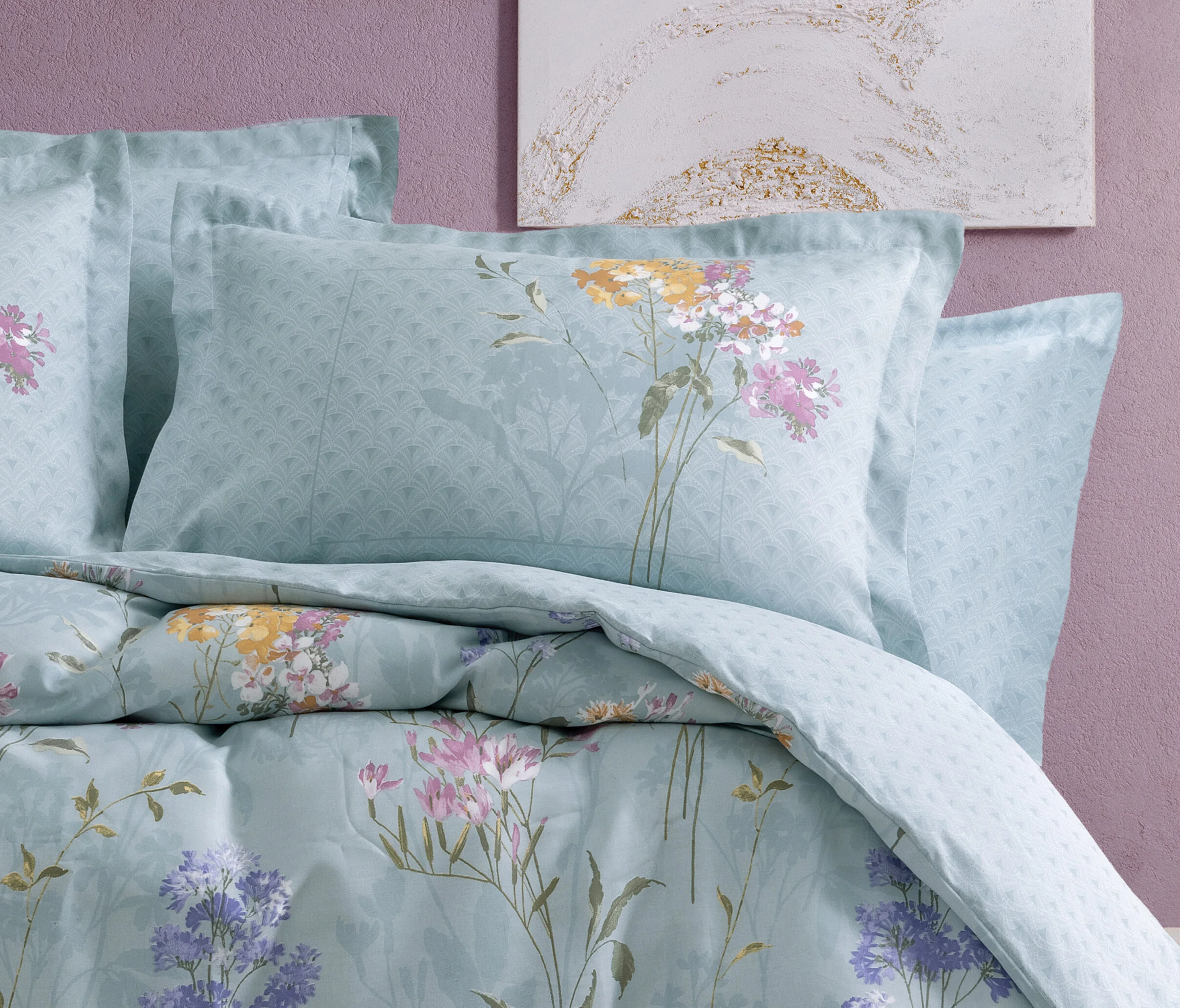 طراحی گلدار ملایم با رنگبندی آرامشبخش (مانند سبز نعنایی) باعث شده سرویس روتختی یاتاش آلیسا بهراحتی با انواع دکوراسیون اتاق خواب هماهنگ شود: