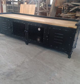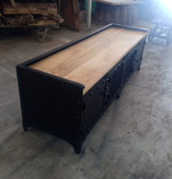 میز تلوزیون ساخته شده در تولیدی nivhome که طراحی شده از روی نمونه موجود در سایت امازون که از متریال چوب روس و فلز مطابق عکس ساخته شده چوب کار شده در این میز با طرح و نقش خاص چوب یولکای روسی و از تکنیک سندبلاست برای برجسته سازی سطح چوب استفاده شده فلز میز از ورق فلزی سبک با قطر یک میل و از پروفیل صنعتی مخصوص مبلمان و جوشکاری co2 برای اتصالات بهره برده رنگ فلز مشکی و ازنوع پودری الکترو استاتیک که در کوره با حرارت 250 درجه پخته شده و بسیار مقاوم و با دوام گشته رنگ چوب از نوع گیاهی مات فندقی که ارگانیک ، موج نما ، ابگریز و سازگار با محیط زیست یراق و دستگیره های خاص که ازجنس المینیوم و تماما تراشکاری شده